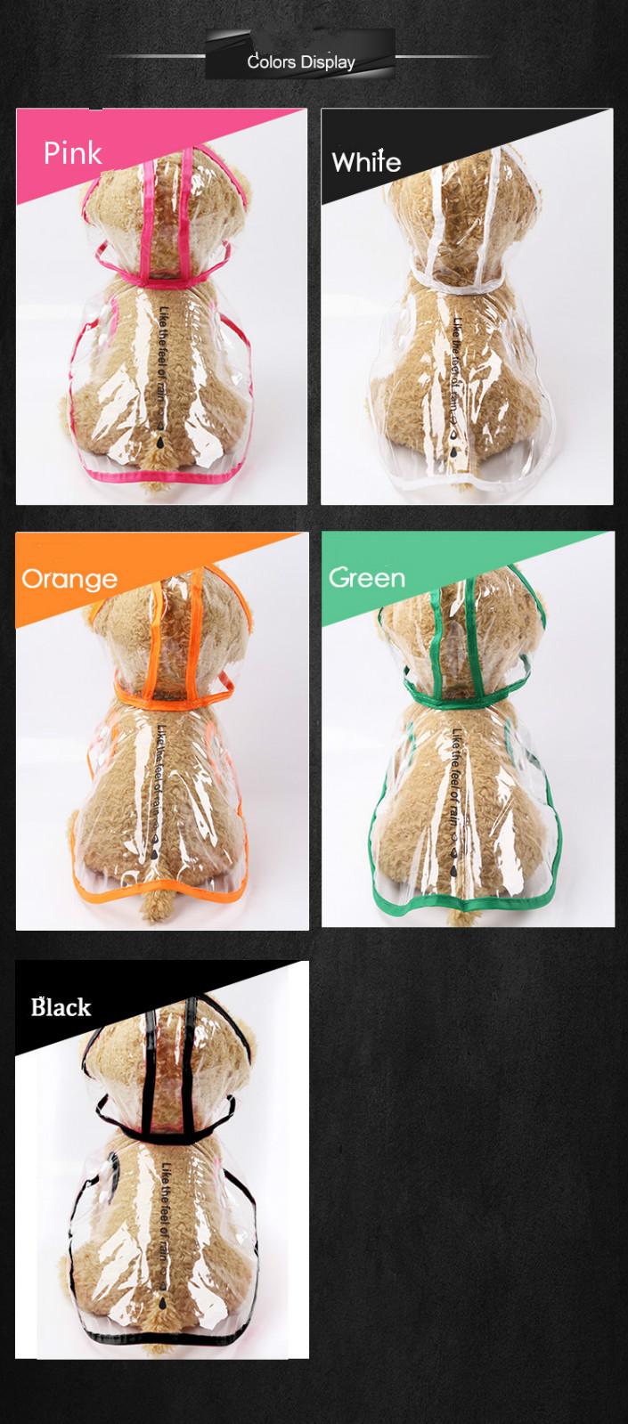 Check out the stunning visuals below that showcase the versatility and style of our transparent pet raincoat: