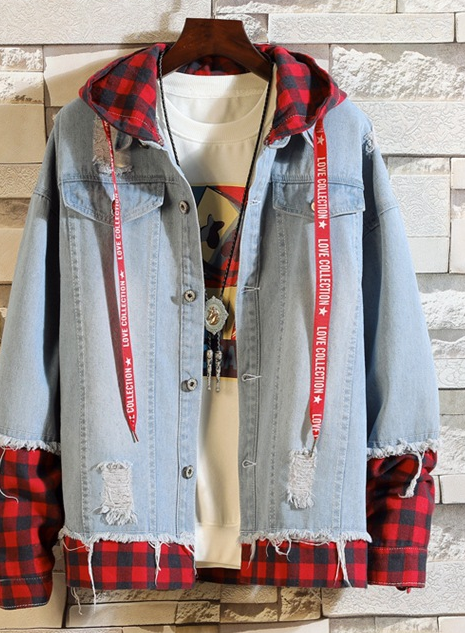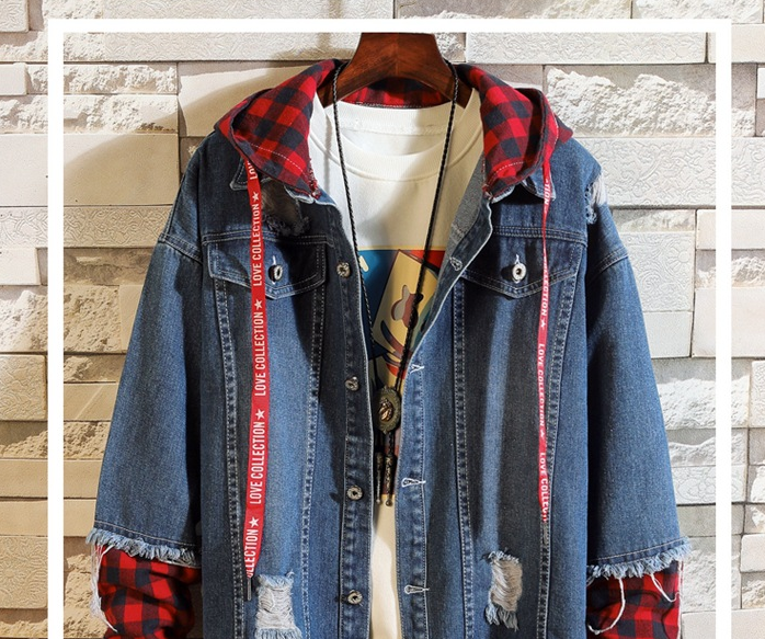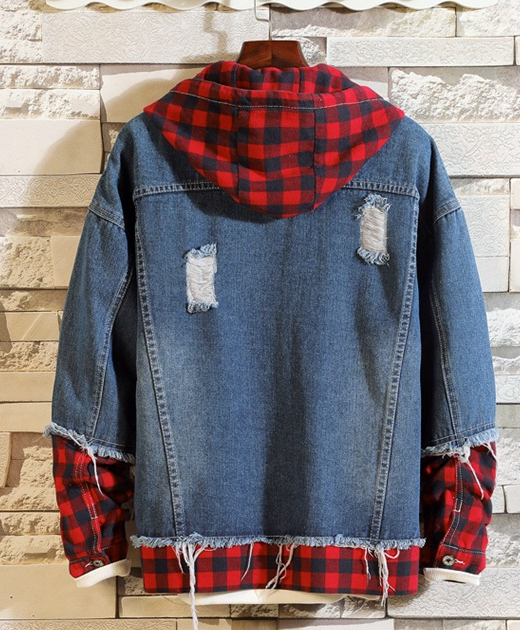 764052699028588 Autumn New Style Plaid Hooded Denim Jacket for Men – onlinegotmine.com